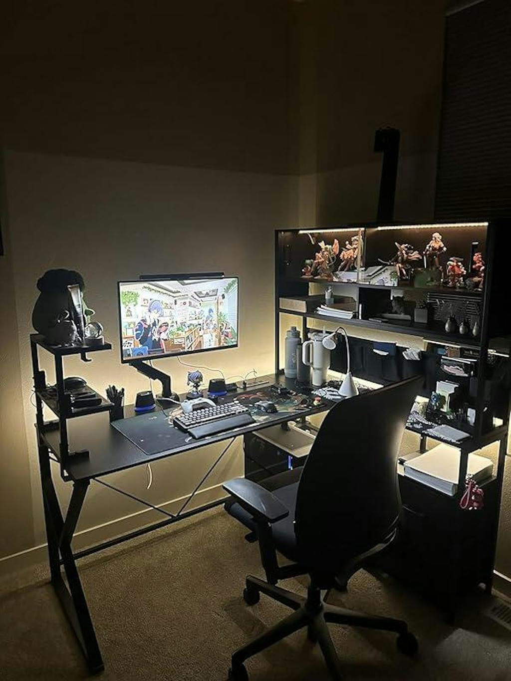 Computer gaming desk comes with Display Cabinet and Led Light, provides ample space to display your decorations, photo albums, game figure, and so on. The doors protect your items from dirt and ash and you can clearly see your decorations. The gaming desk comes with RGB LED light strip, remote control via APP, Over 60000 colors and 29 flashing modes for your to choose.