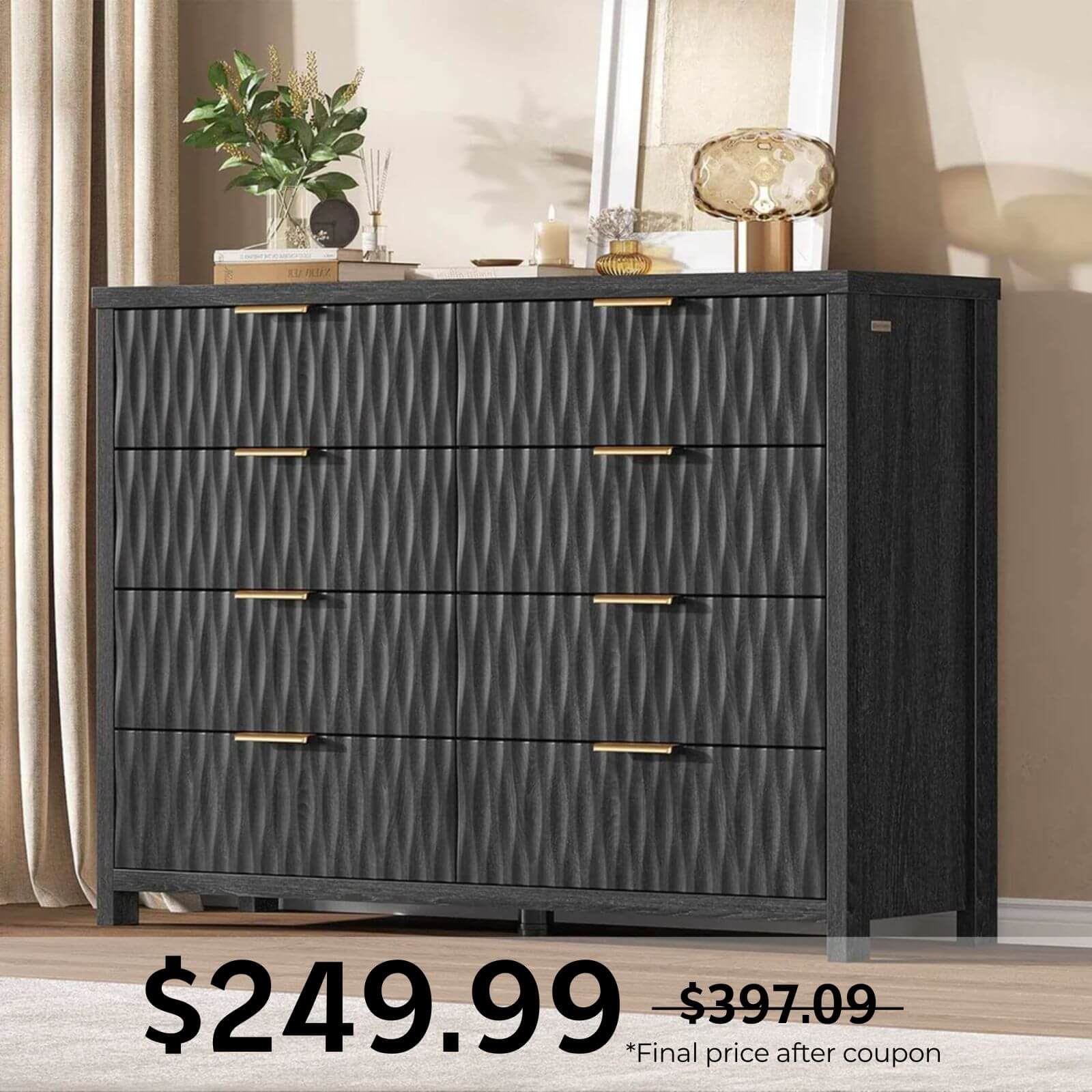 Fluted Dresser with 8 Drawers Black