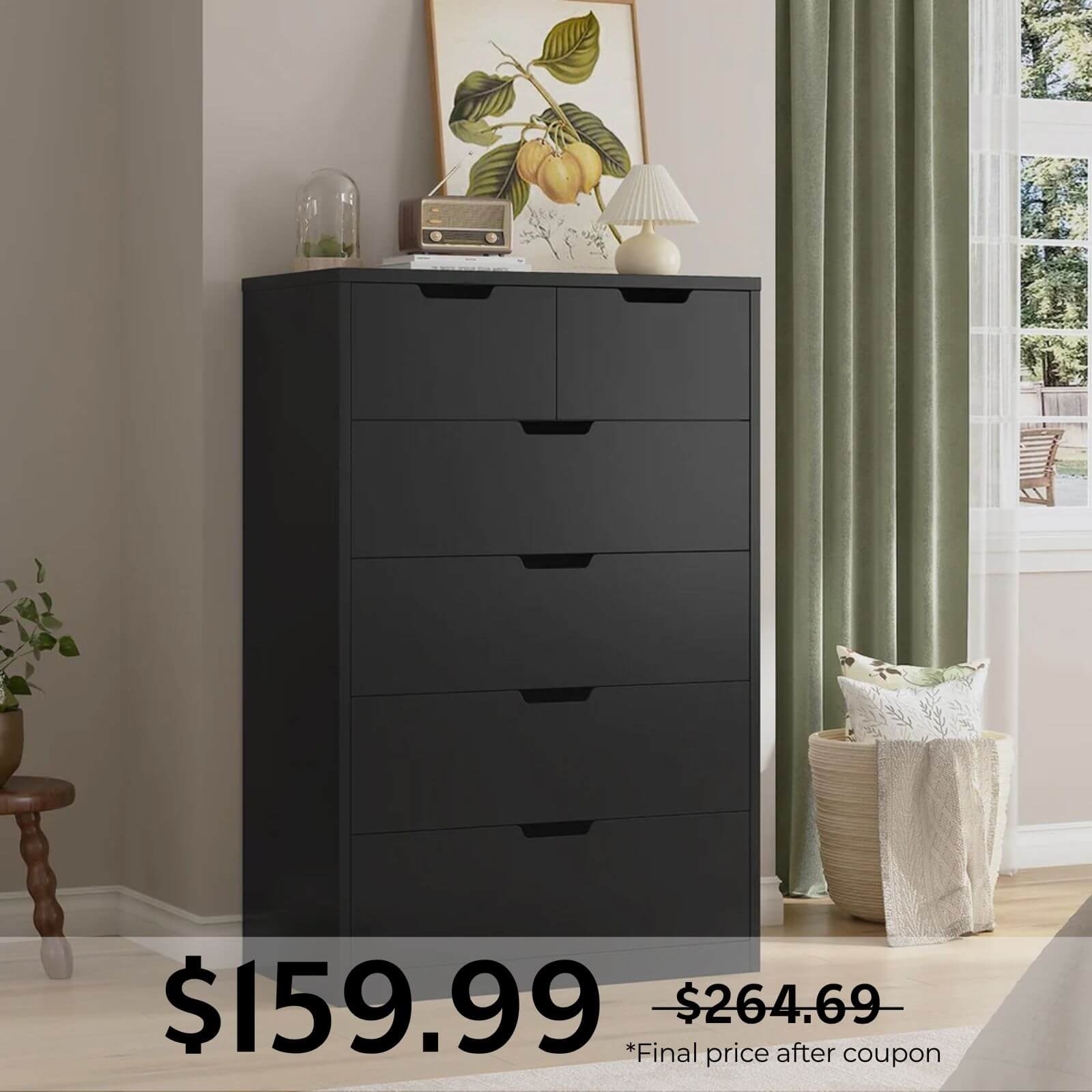 Tall Dresser with 6 Drawers Black