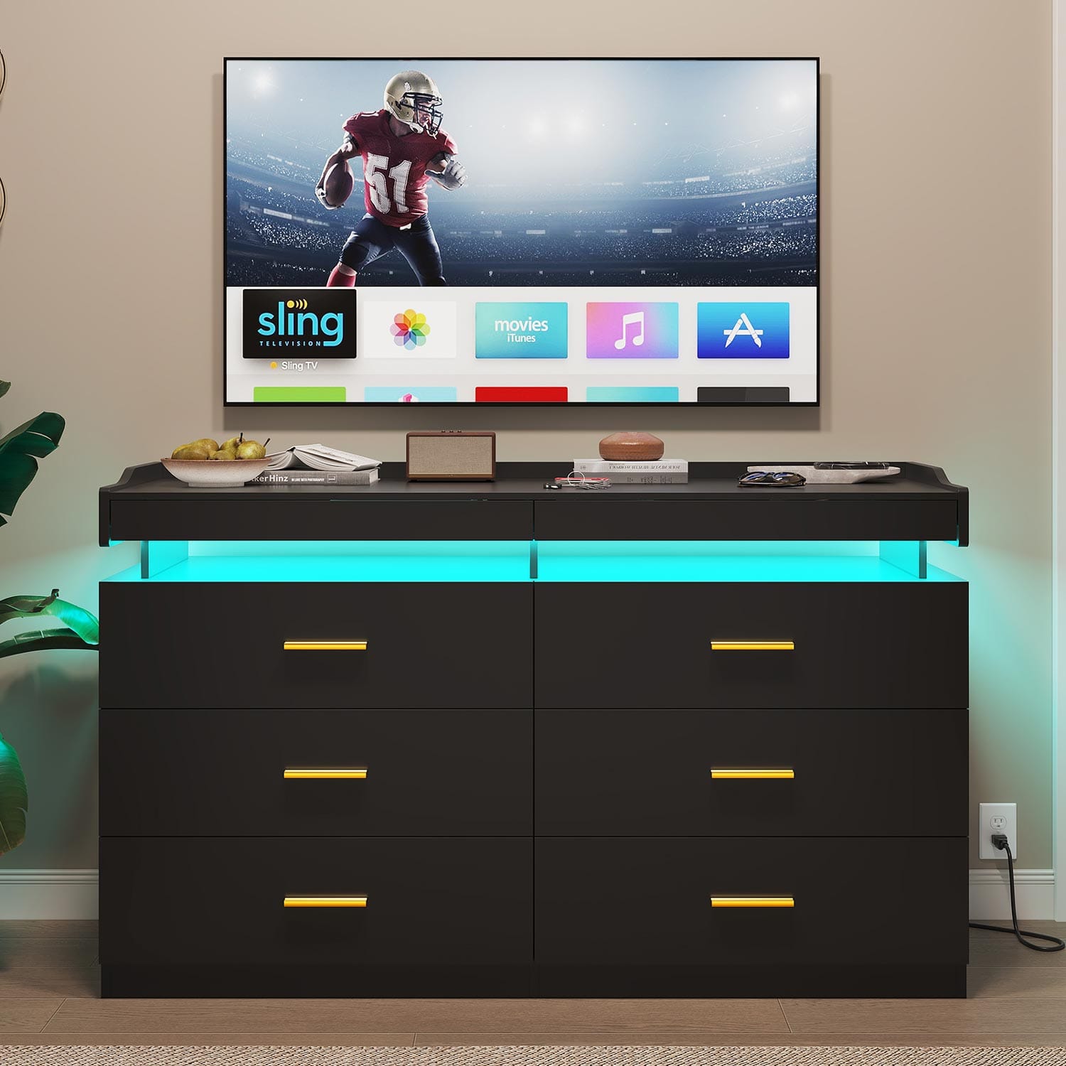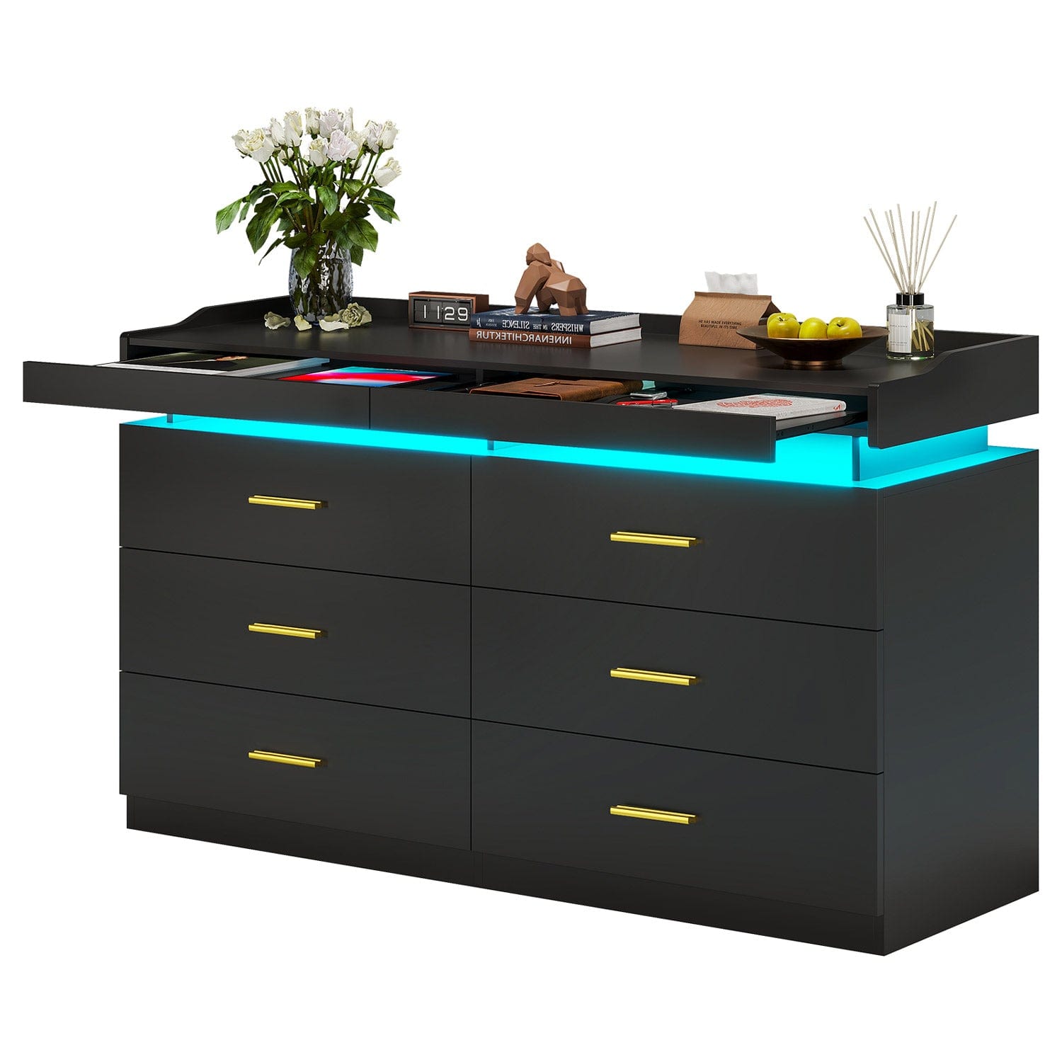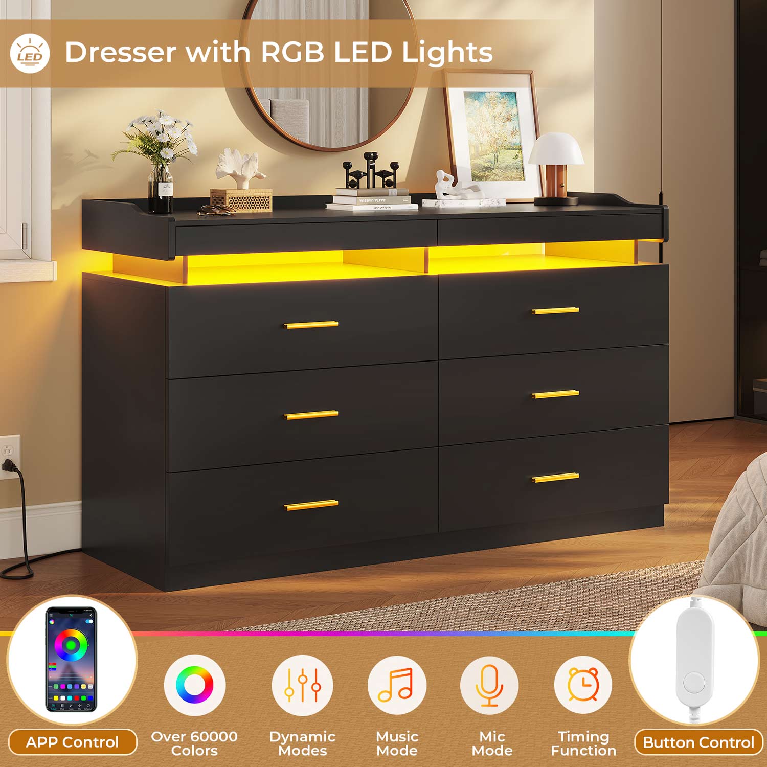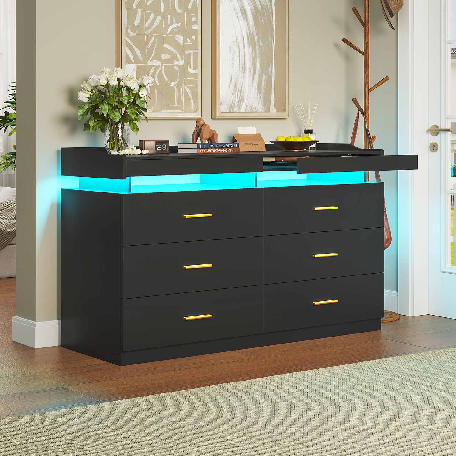 Sikaic Dresser LED Dresser with 6 Drawers Black Black / Engineered Wood / Modern