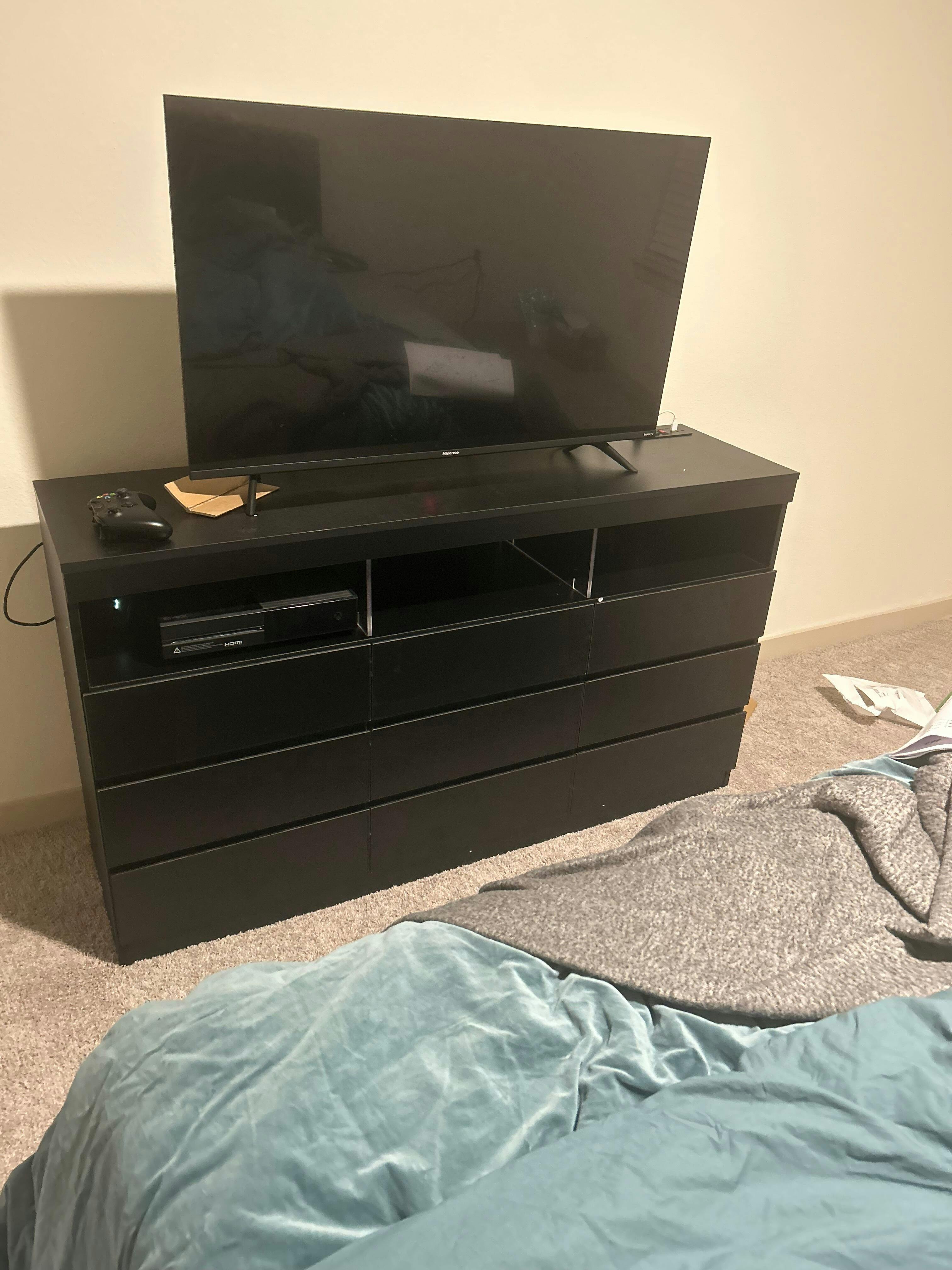 This dresser is made of quality engineered wood. It's sturdy and can be anchored to the wall using included anti-tipping device so you'll know pets and little ones are always safe while being around the dresser.