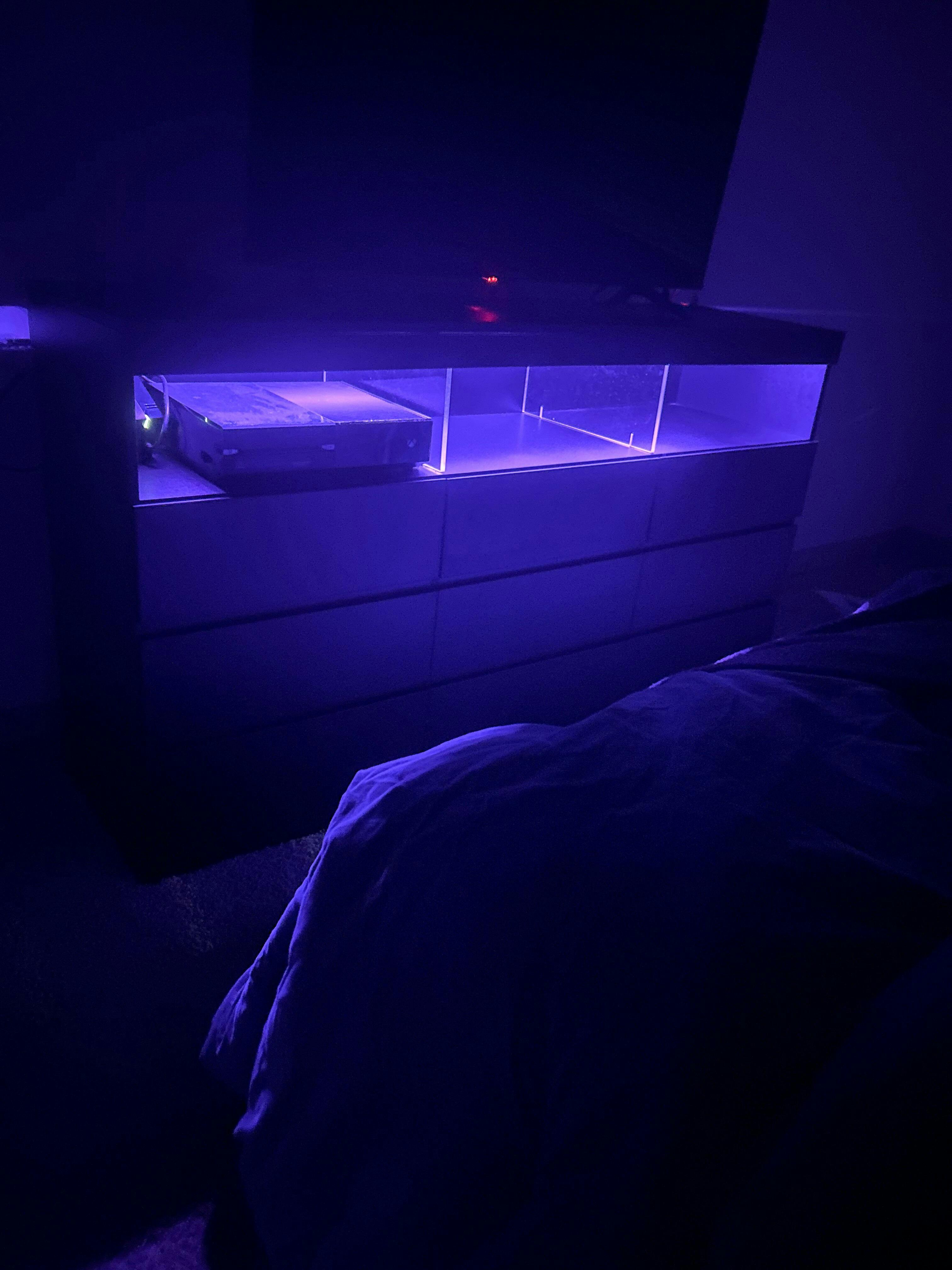 The chest of drawers boasts of spacious drawers which help you keep organized and clean by storing your personal items by categary. Above the 9 spacious drawers, there's 3 open space beautifully divided by acrylic panels. It's chic and lets more RGB light shine through.