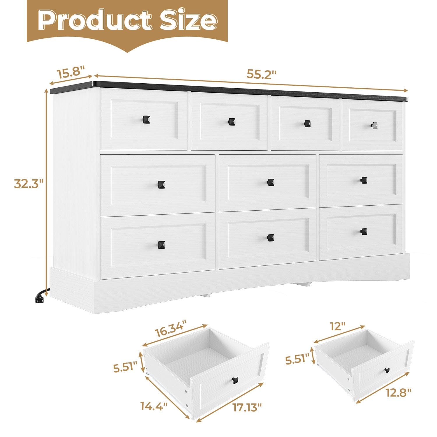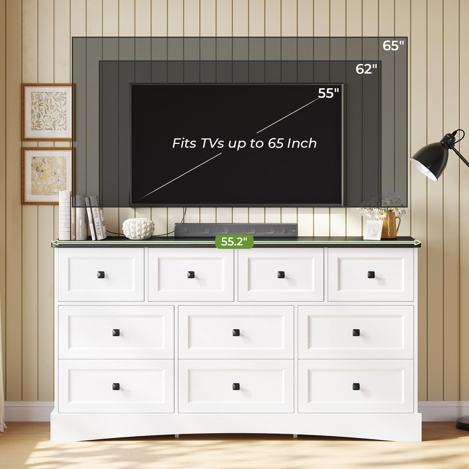 55.2 Inches Dresser with Charging Station White and Black