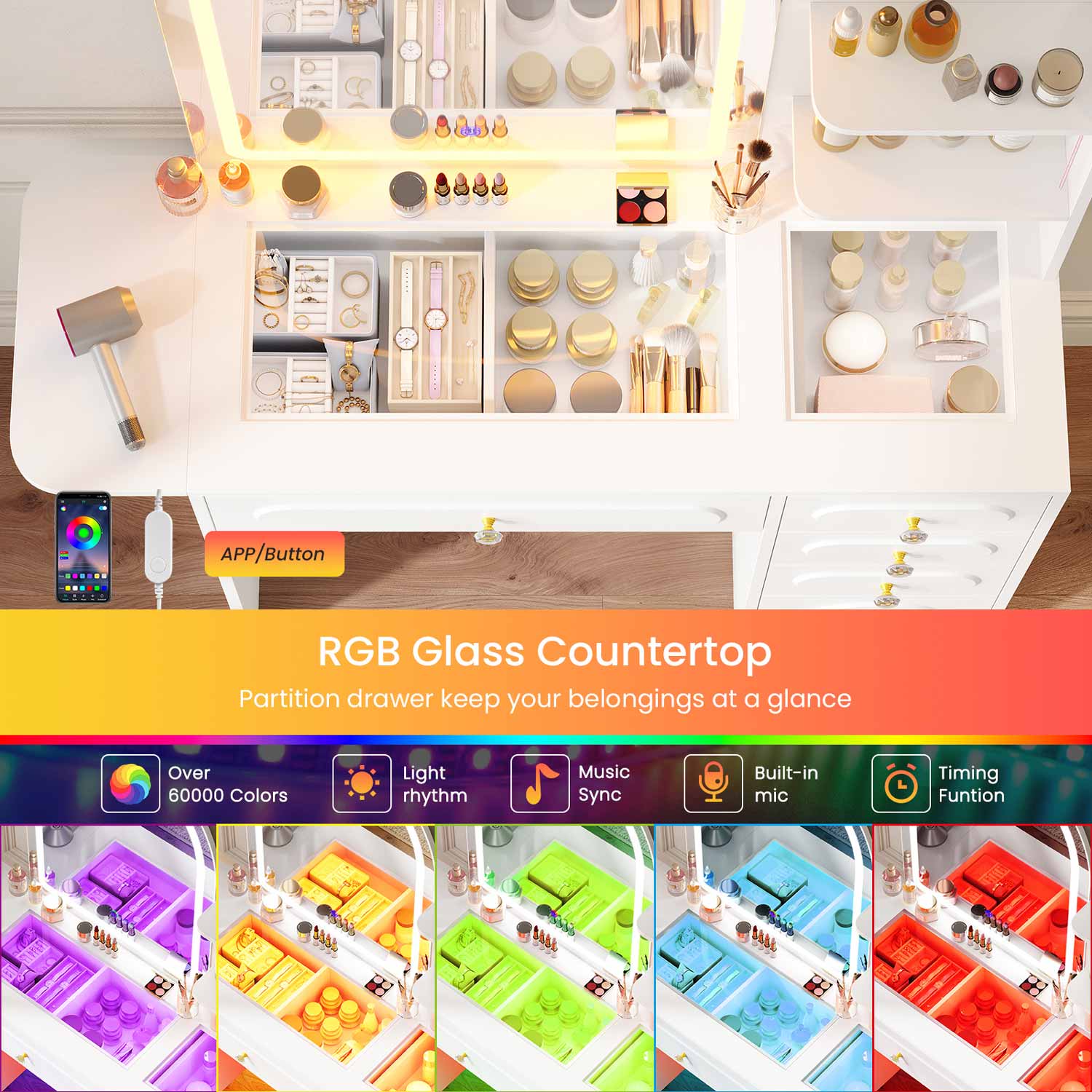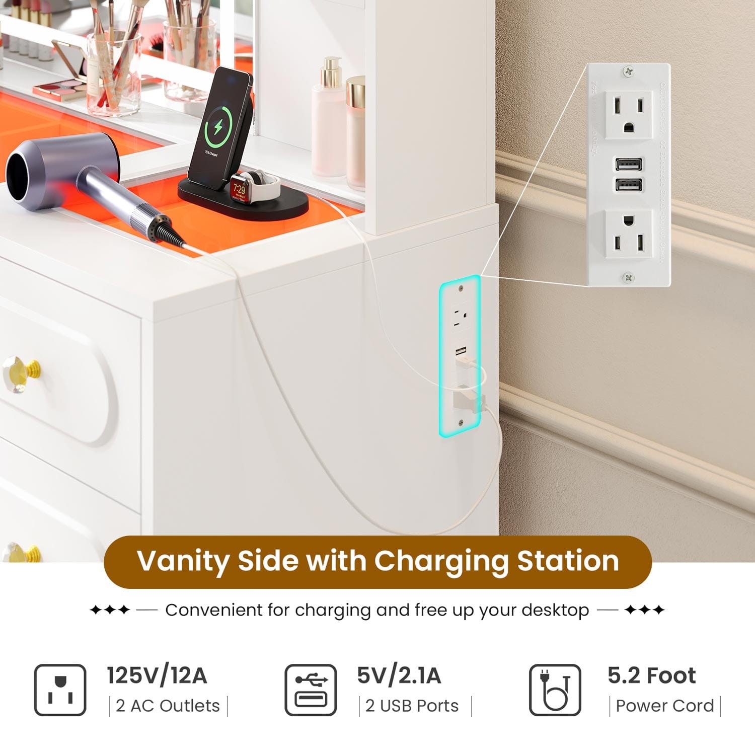 Arched Makeup Vanity with LED Lighted Mirror and Charging Station White