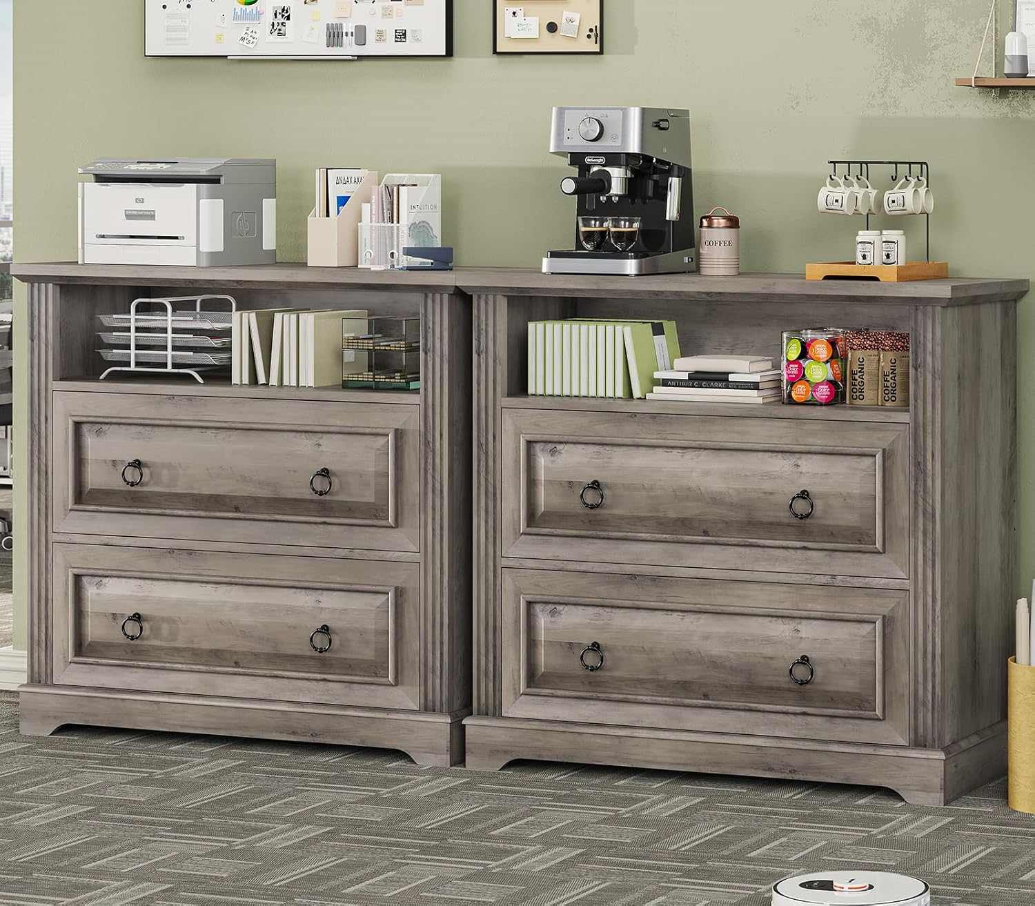 Sikaic File Cabinet File Cabinet with Printer Stand and 2 Drawers Grey Grey / Engineered Wood / Farmhouse