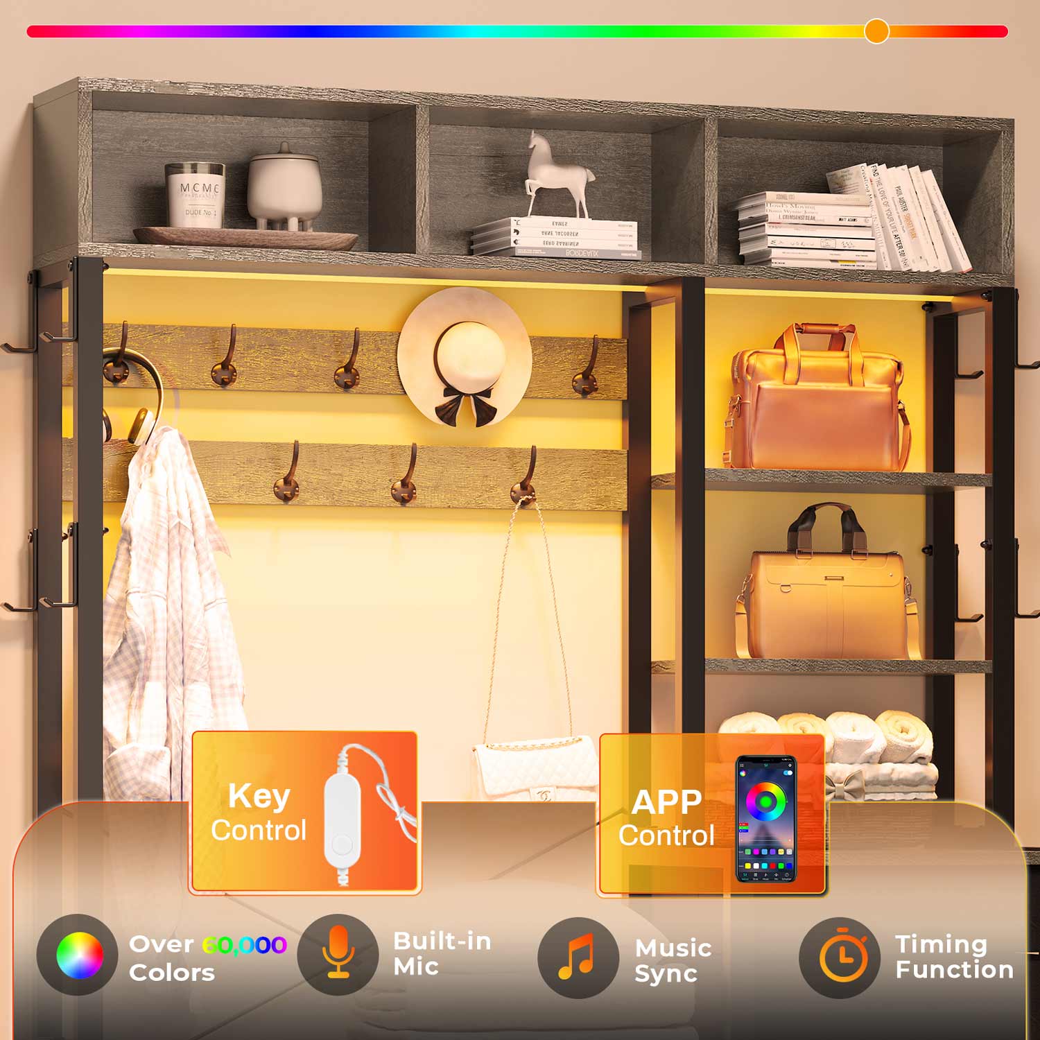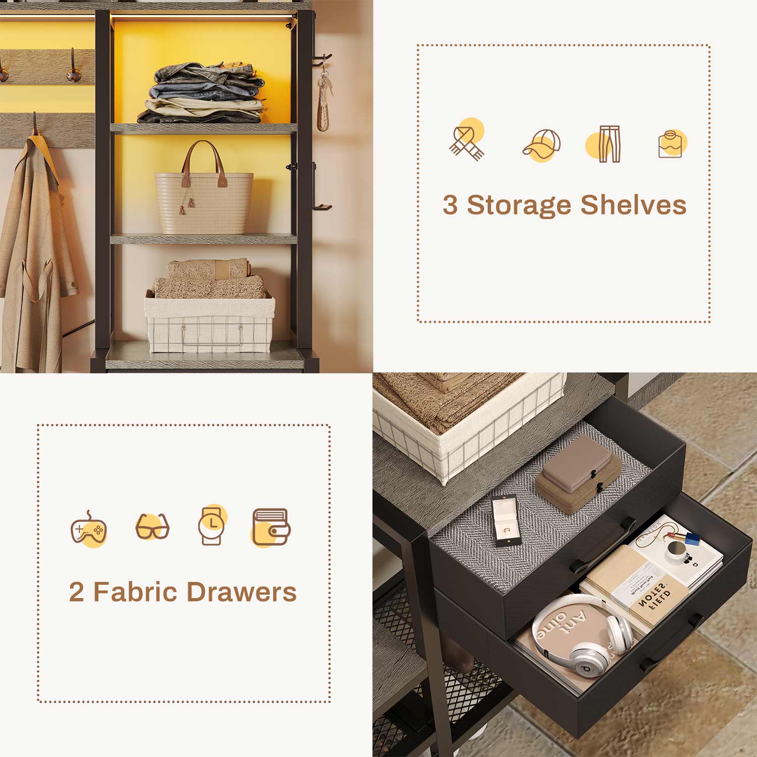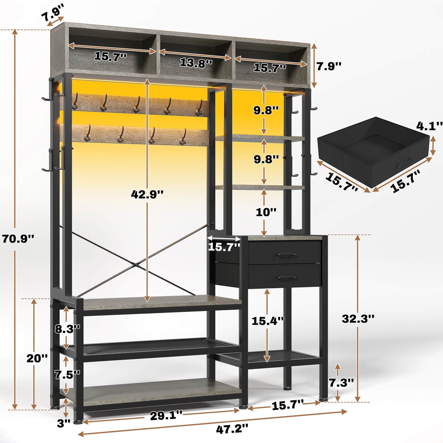 Hall Tree with Bench and Shoe Storage Oak Grey