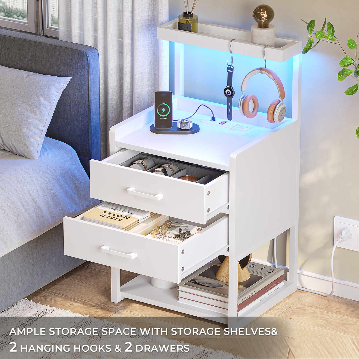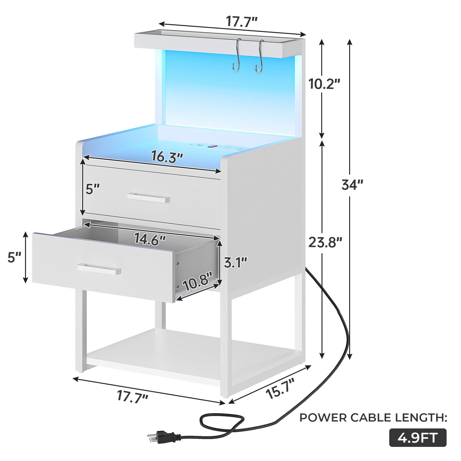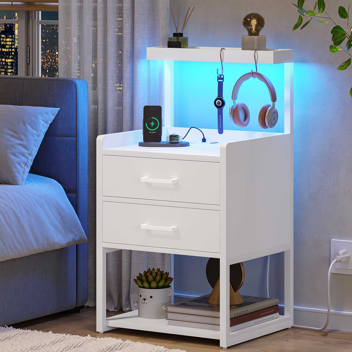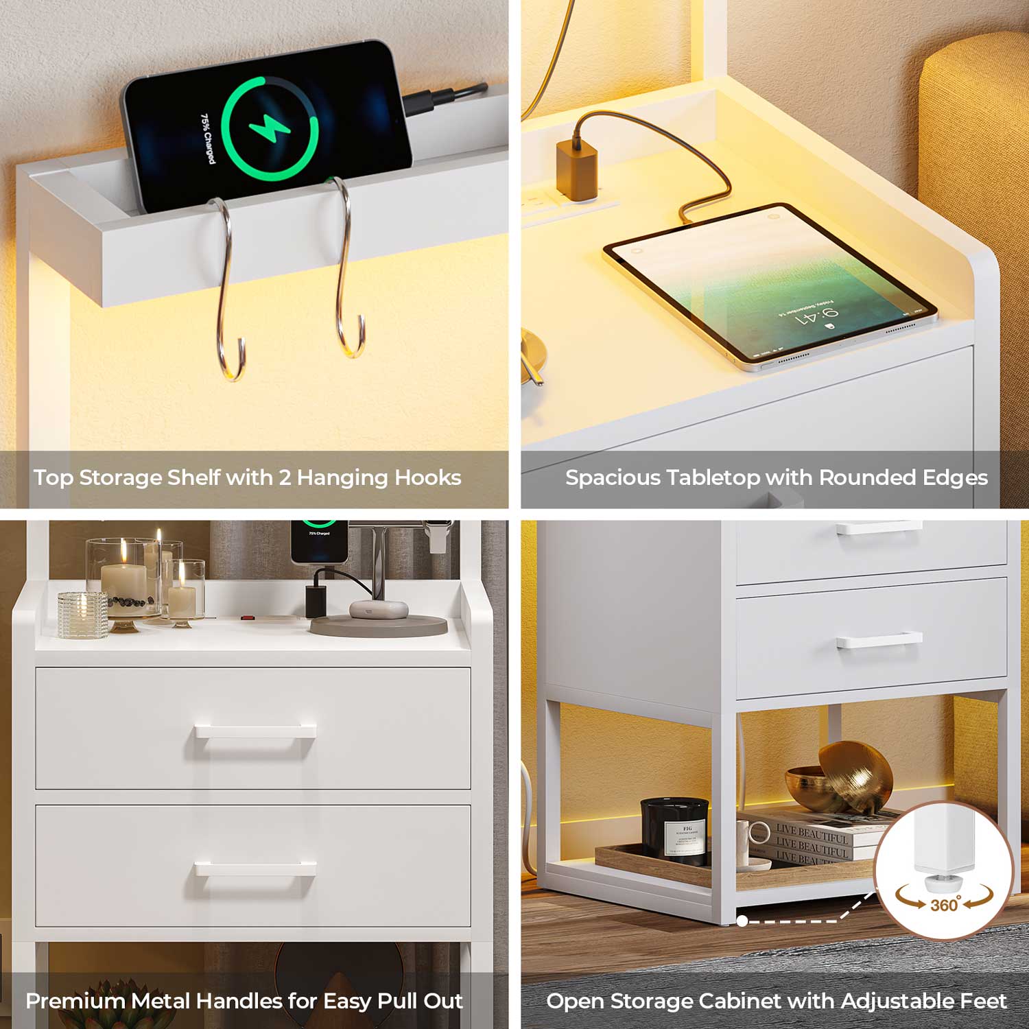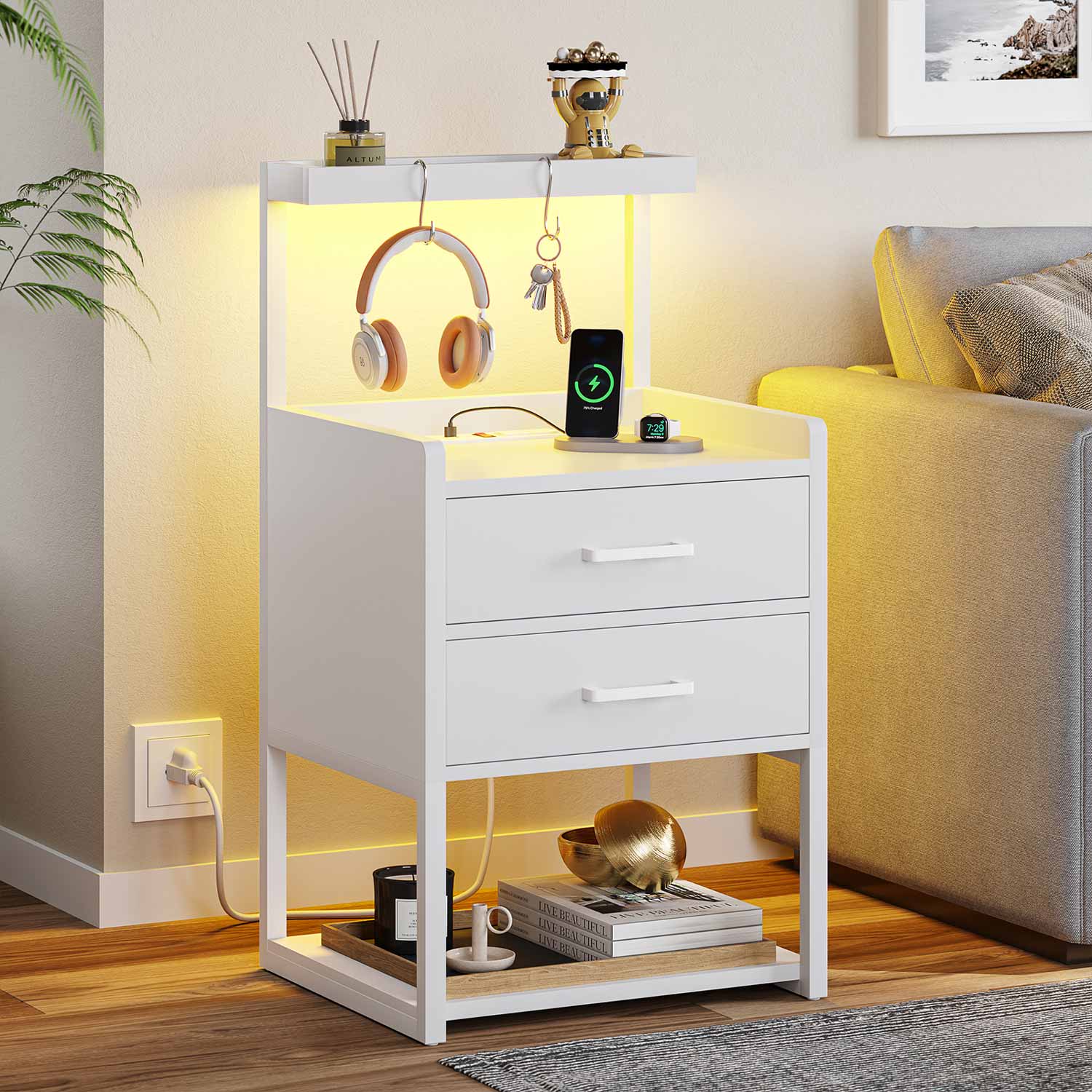 LED Nightstand with Charging Station White