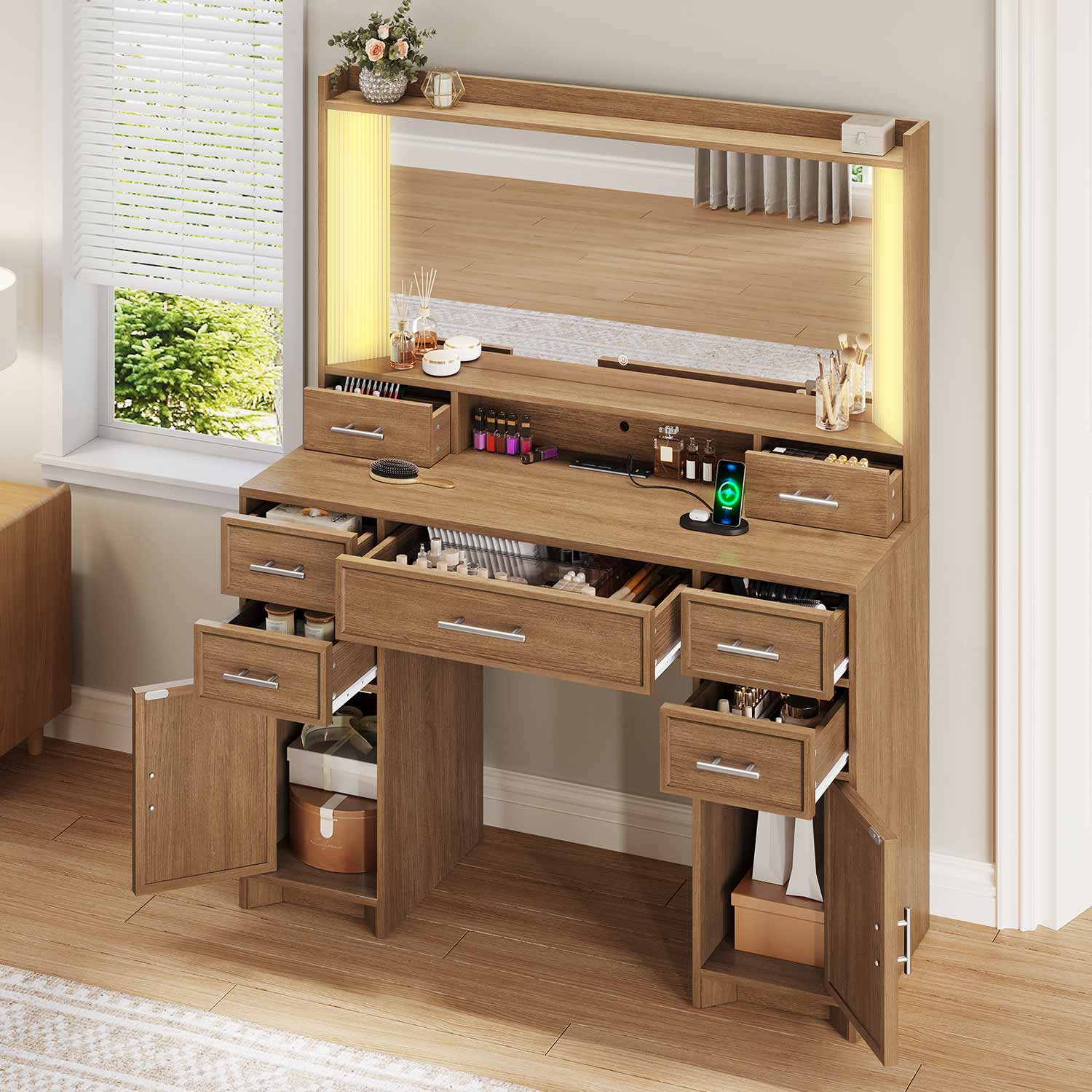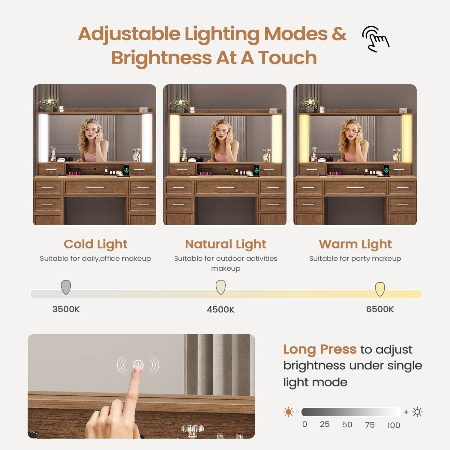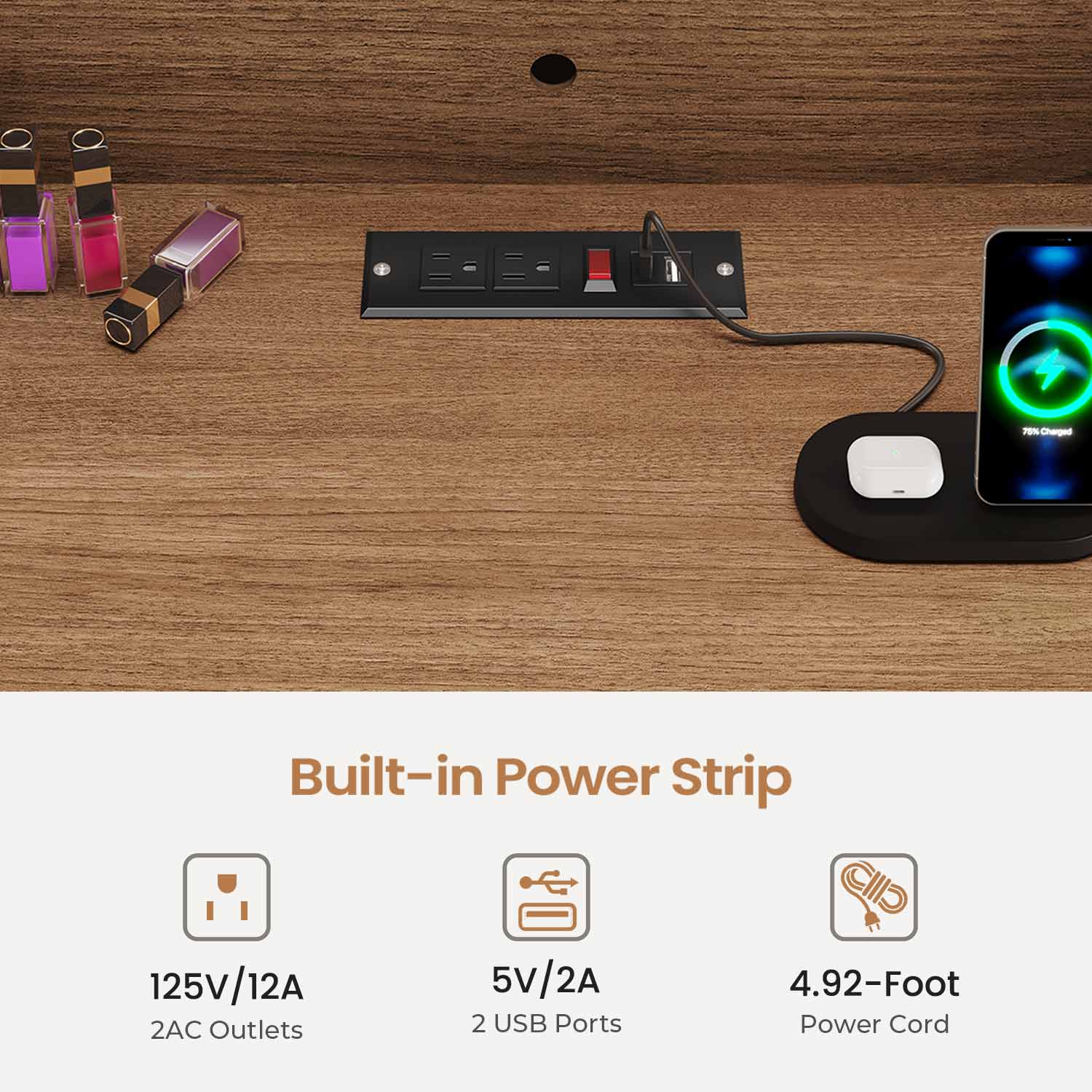 Makeup Vanity with Charging Station and Lights Dark Brown