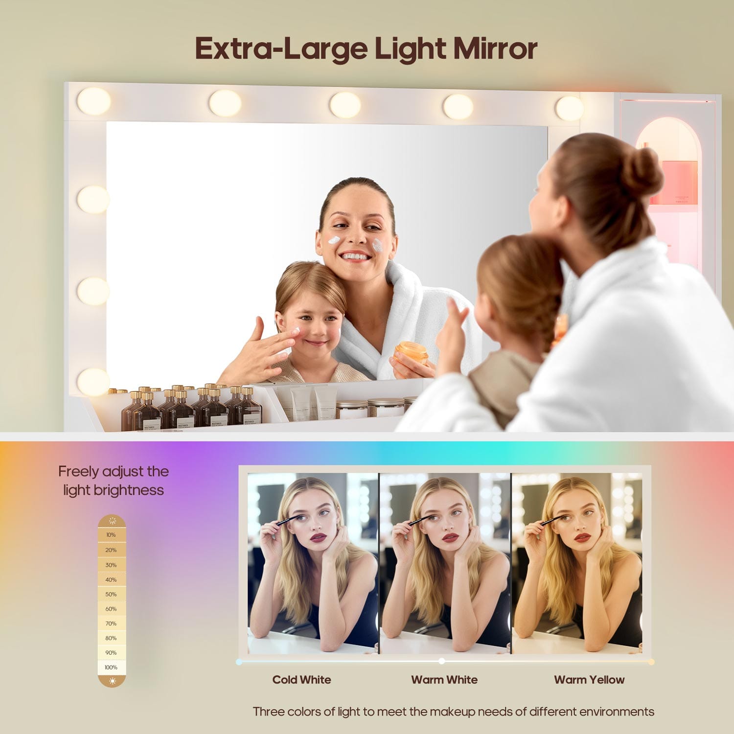 Makeup Vanity with Large 31.5 Inches Mirror and Lights White