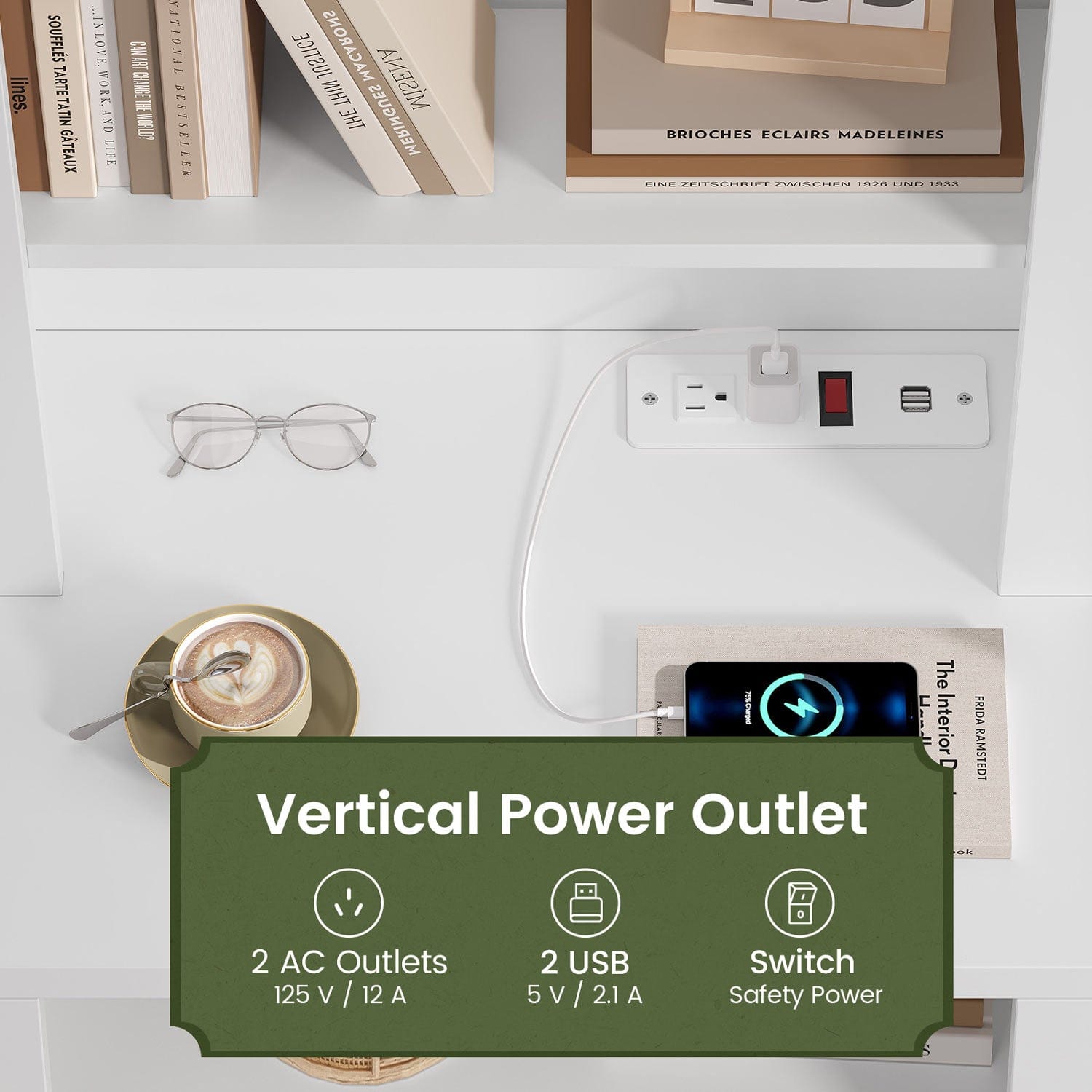 Equipped with 2 AC outlets and 2 USB ports, this nightstand powers up to 4 devices simultaneously. It serves as a convenient charging station for phones, iPads, and gaming gear, offering exceptional versatility.